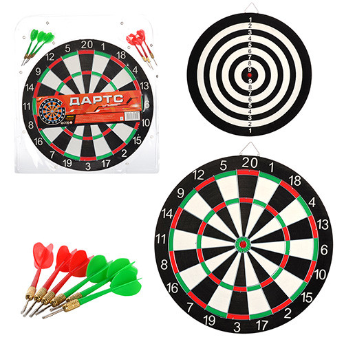 Незабываемым подарком несомненно будет Игра Дартс Profi (MS 0096). Данная модель двухсторонняя, изготовлена из алюминия и качественного формованного бумажного волокна. Размер игровой поверхности 38,1 см, а толщина 1,5 см. В комплекте идет набор дротиков двух цветов в количестве 6 штук. Полный вес всех составляющих равен 945 гр. Игра развивает точность, моторику рук и оттачивает глазомер.