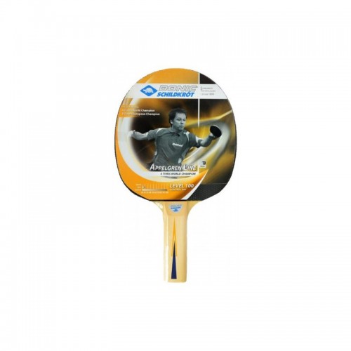 Ракетка для настольного тенниса Donic Appelgren Level 100 рекомендована для начинающих игроков, идеально подходит для первых тренировок.
