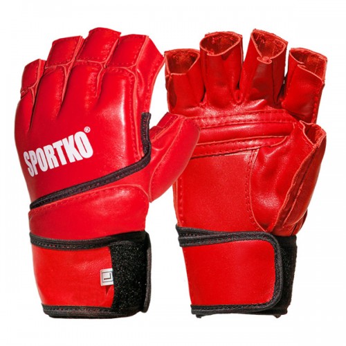 • Перчатки кожаные с открытыми пальцами Sportko ПК-4 красные М