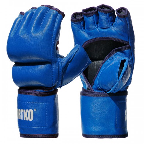 Битки с открытыми пальцами кожаные Sportko арт. ПК-5 синие L