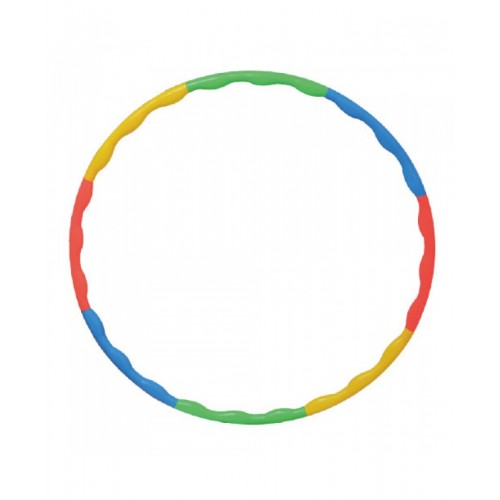 Внутренняя поверхность хула-хупа имеет волнообразные бугорки, которые помогают бороться с жировой прослойкой и целлюлитом, делает массаж. Конструкция представляет собой 8 частей разного цвета. Поверхность твердая.