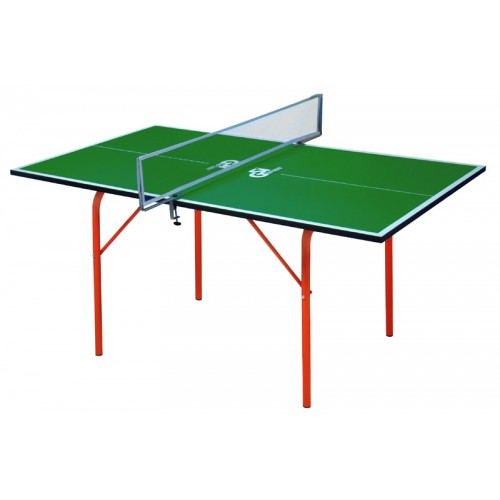 Теннисный стол для закрытых помещений. Предназначен для детей дошкольного возраста и начальных младших классов. В качестве материала для игровой поверхности используется специально обработанная древесностружечная плита (ДСП) толщиной 16 мм. На ДСП нанесено специальное пластиковое покрытие зеленого (Junior Green) цвета.