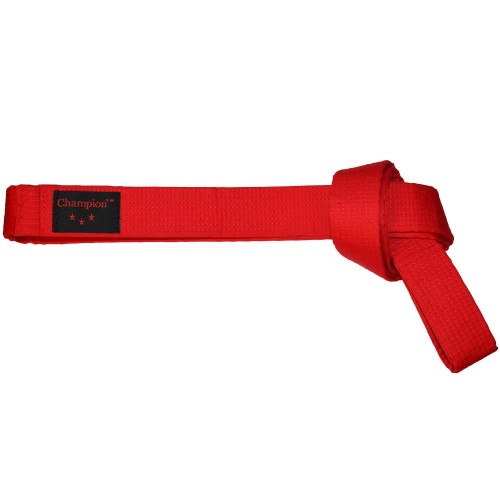 Красный пояс для кимоно зарабатывается большим трудом и упорством. Он означает, что боец прошел немалый путь, вырос духовно и освоил необходимые боевые техники. Данный цвет символизирует кровь, пролитую учеником на многочисленных тренировках, и на пути к поставленной цели.
