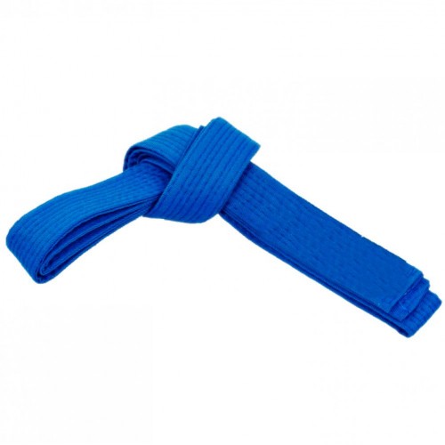 Пояс для кимоно в карате считается главным элементом экипировки спортсмена. Традиционно его называют оби, его цвет характеризирует уровень умений каратиста. Синий пояс означает высокий уровень бойца, достигается за большой период времени, пройдя все этапы развития, поединков и спаррингов. Кроме показательной функции оби также выполняет роль фиксации одежды спортсмена.